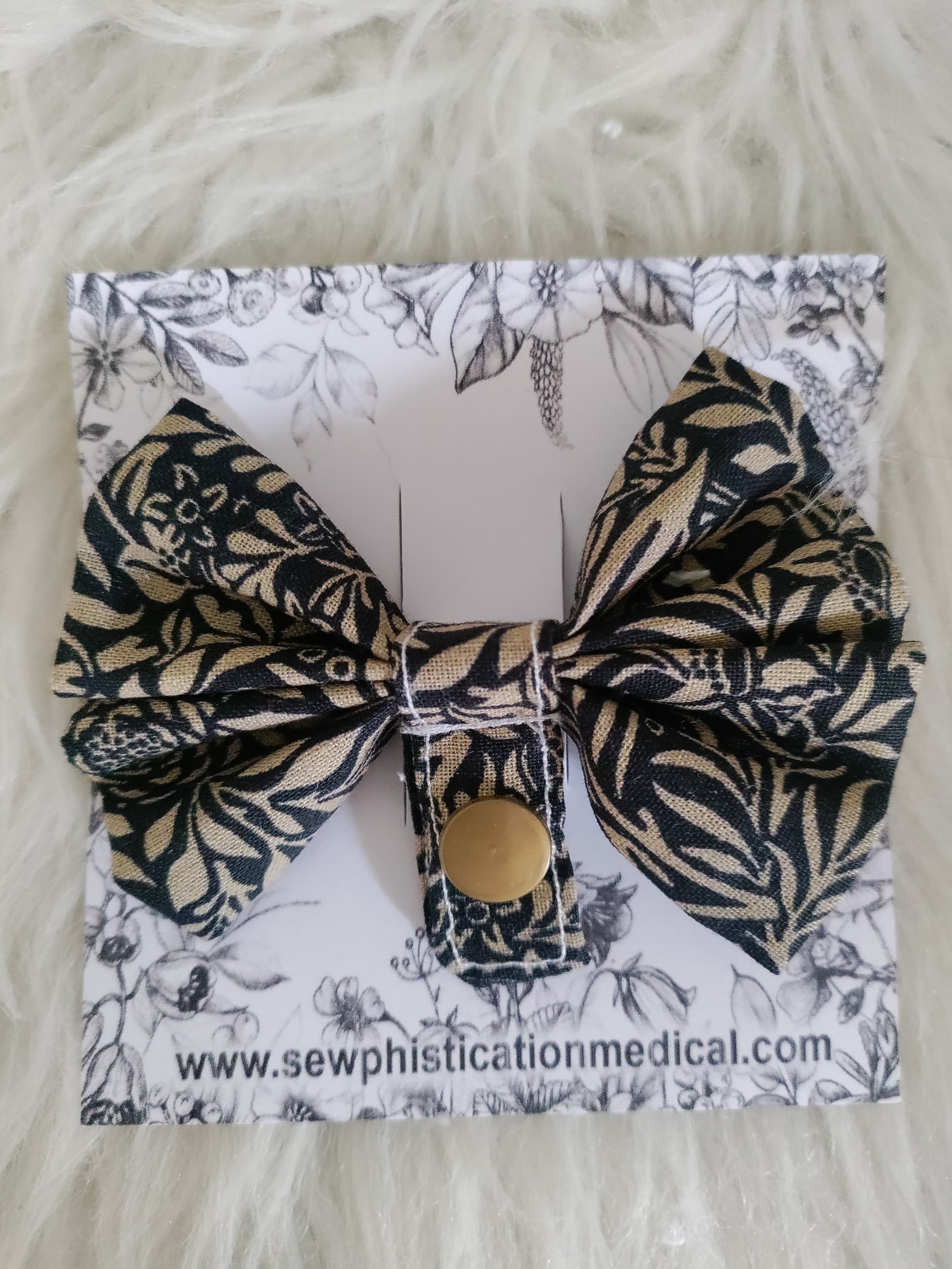Black and gold Tubie Bow, Feeding tube accessories