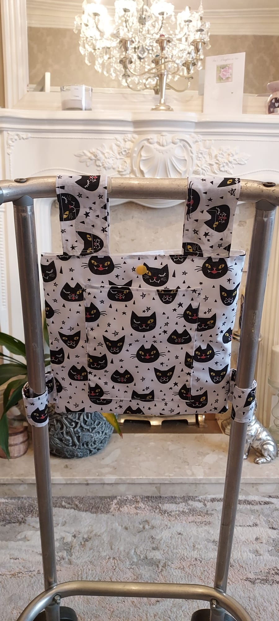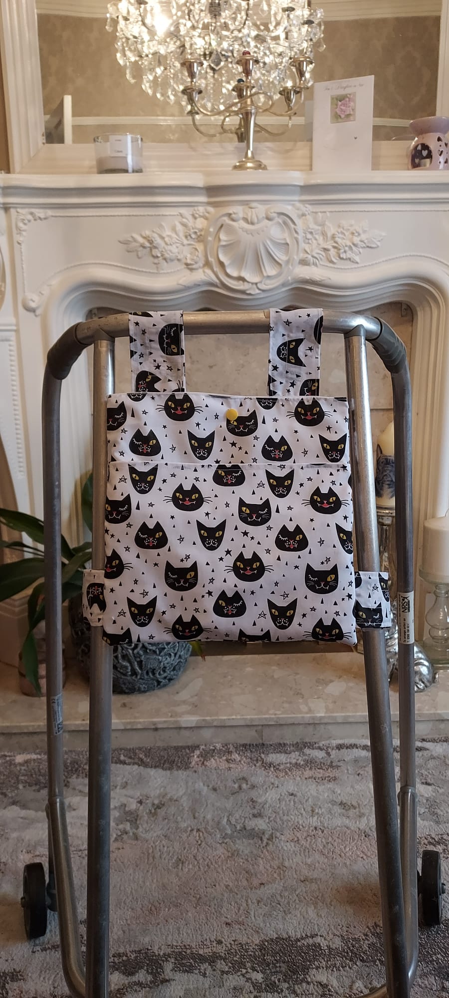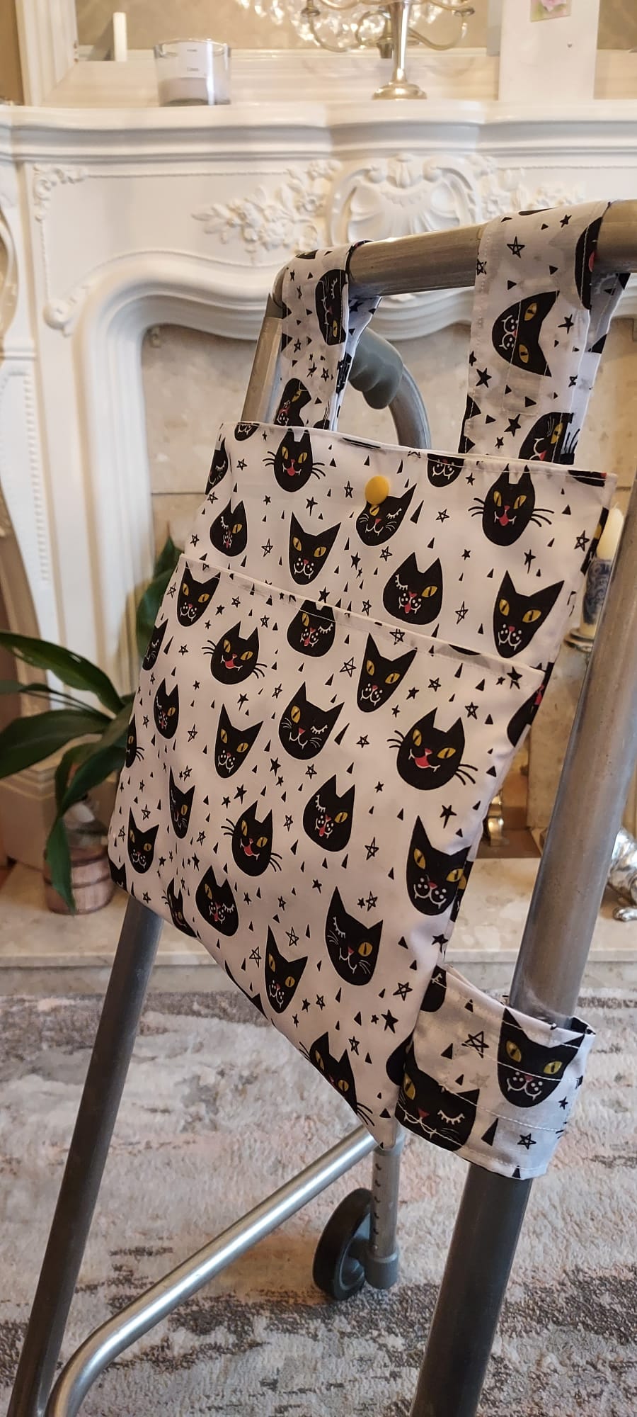 Black cat Zimmer frame bag, walking frame bag, accessories, walking aid, handmade, bag, storage