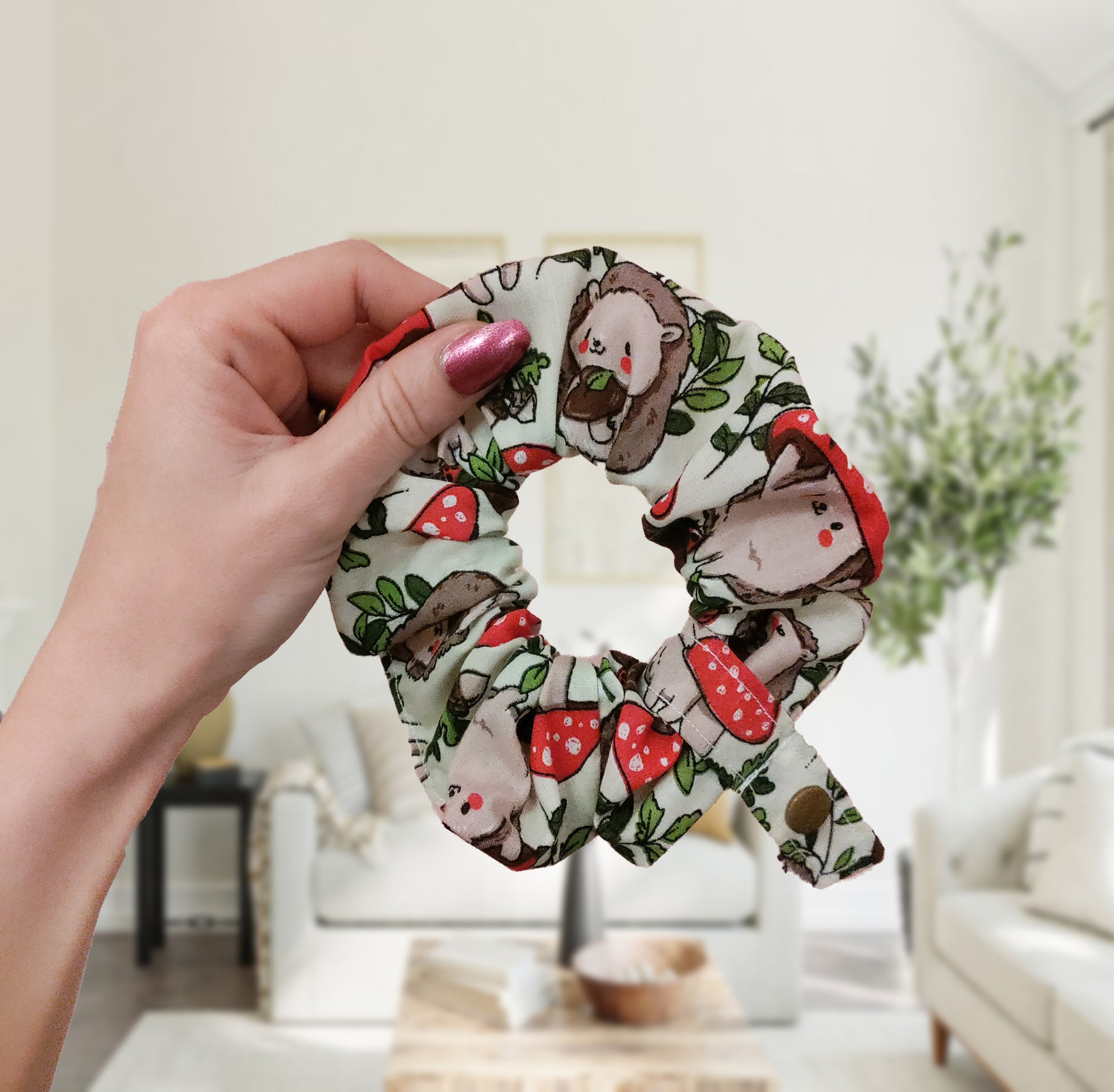 Hedgehog mushroom tubie scrunchie