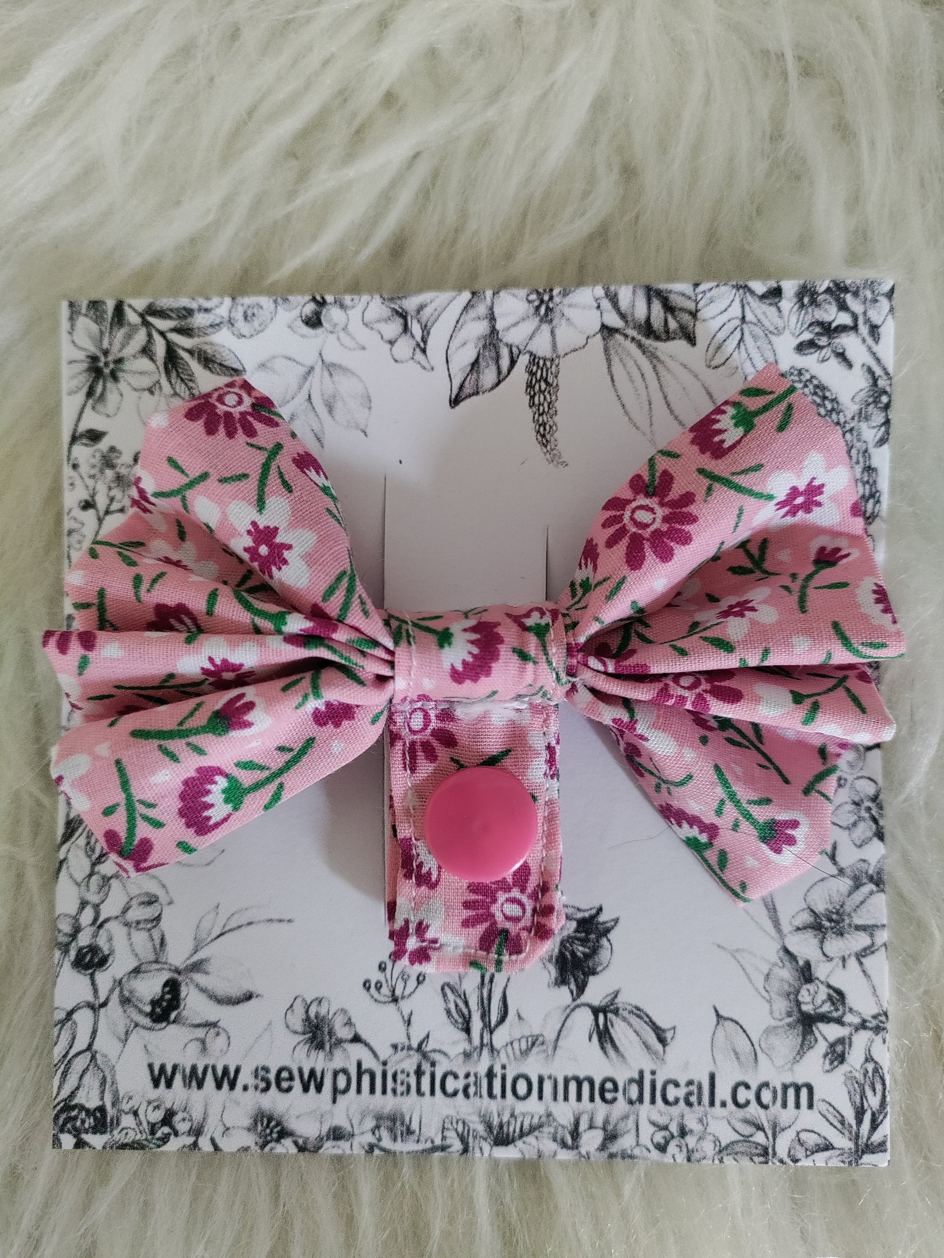 Pink floral Tubie Bow, Feeding tube accessories